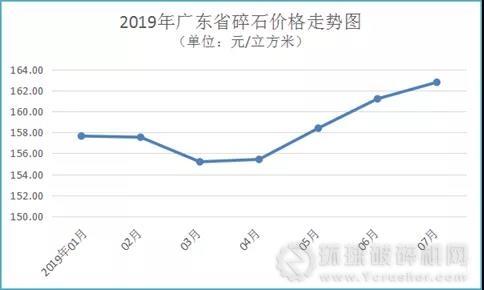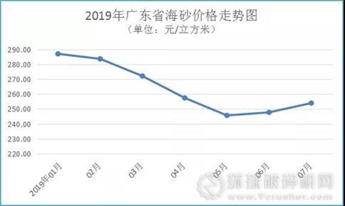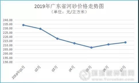 放眼廣東省砂石市場,日前,砂石骨料網從廣東省發改委價格監測中心了解到, 受多地砂石場環保整治、市場供需不平衡以及物流運輸費用較高等因素影響,2019年7月廣東省河砂和海砂價格持續回升,碎石價格維持漲勢。